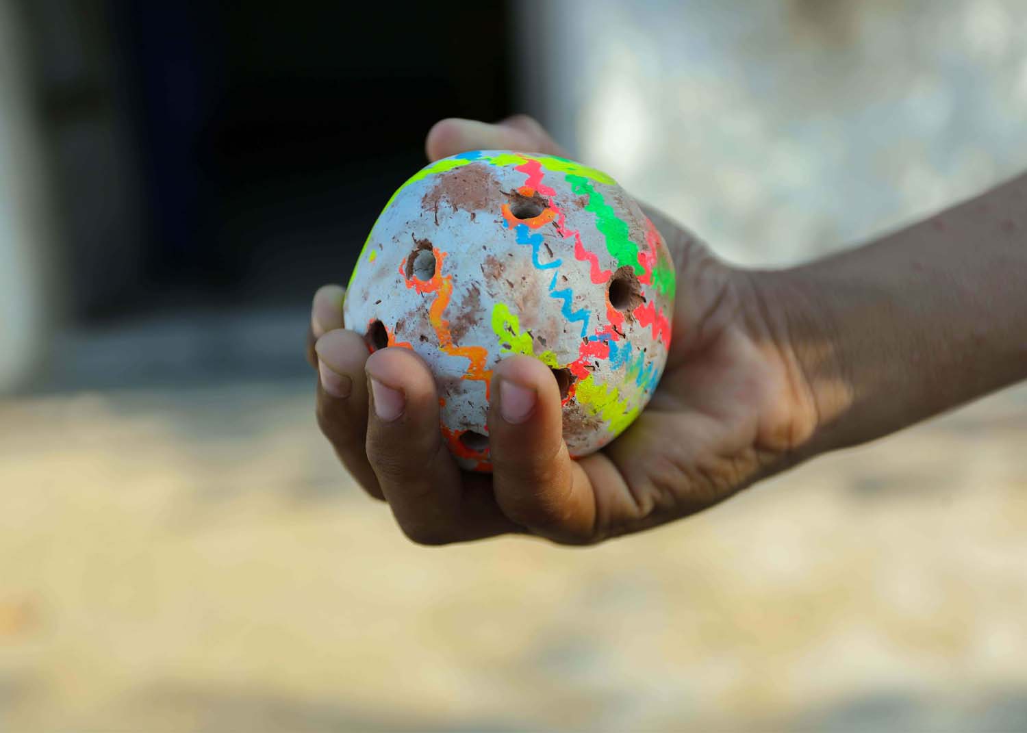The Boreendo, an ancient folk musical instrument from Sindh, is estimated to be approximately 5000 years old. It is noteworthy that an earlier form of the Boreendo was excavated from Mohenjo Daro. The instrument's unique shape, a hollow clay ball resembling an egg, is fashioned from clay commonly found in most of the central Indus Valley, rendering it frequently utilized in Sindh. The Boreendo's spherical shape allows for the variation of tuning, a characteristic feature of melodies from the area, achieved simply by moving the angle of the mouth.